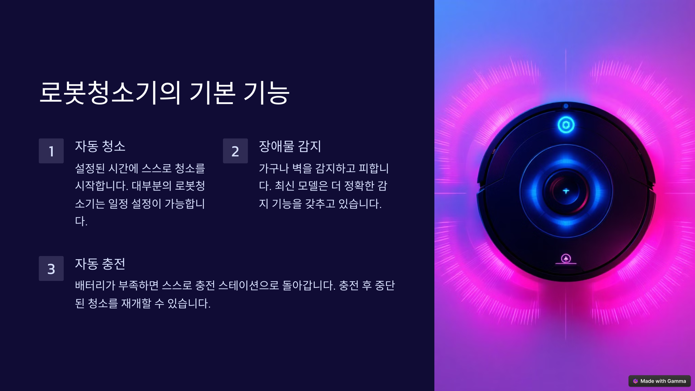 로봇청소기는 다양한 기능을 제공하지만, 기본적으로 다음 세 가지를 체크해야 해요.