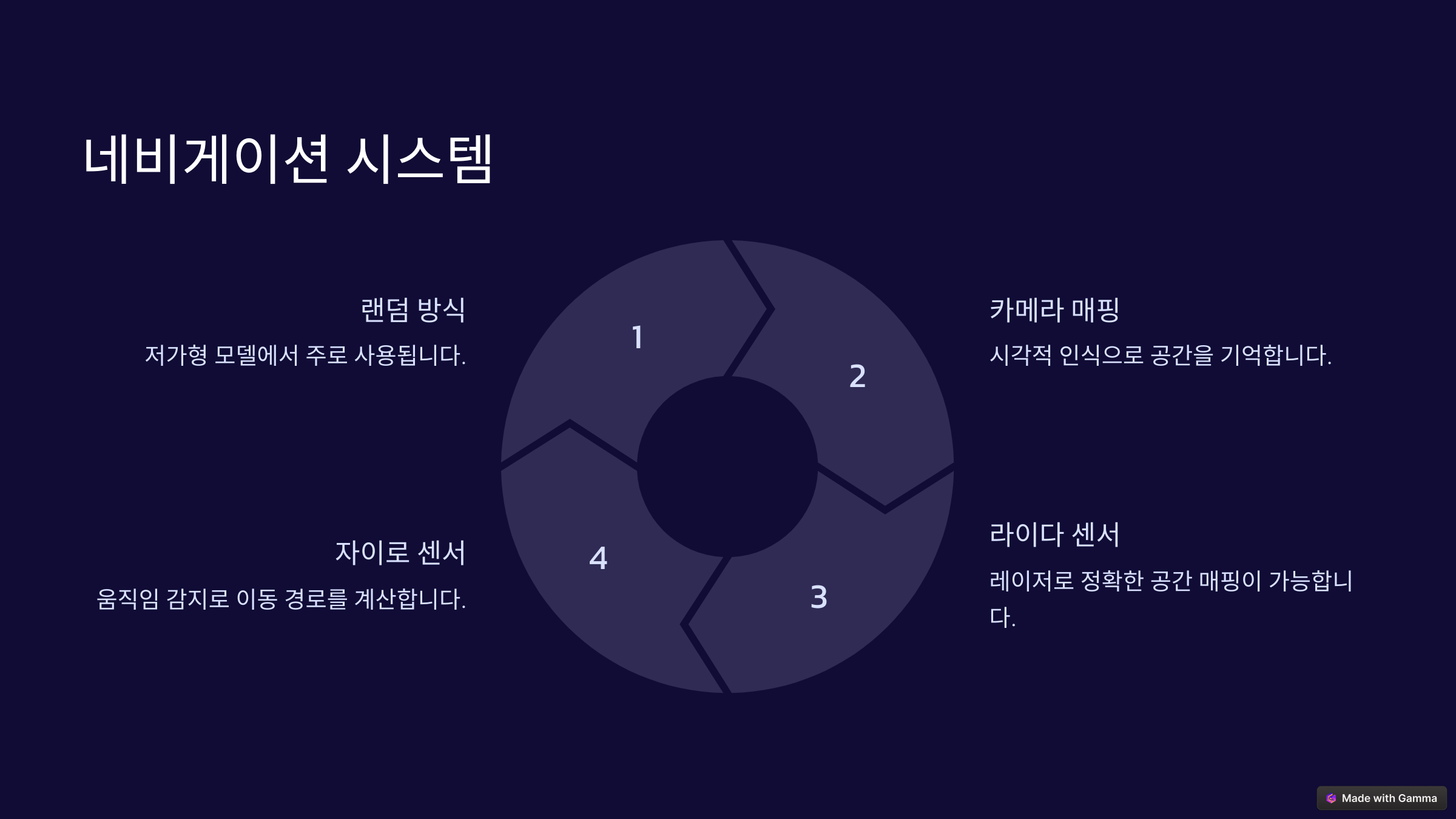 ✔️ 자이로 센서 방식: 센서를 이용해 어느 방향으로 이동하는지 파악하는 방식이에요. 조금 더 체계적인 청소가 가능하지만, 완벽하지는 않아요.