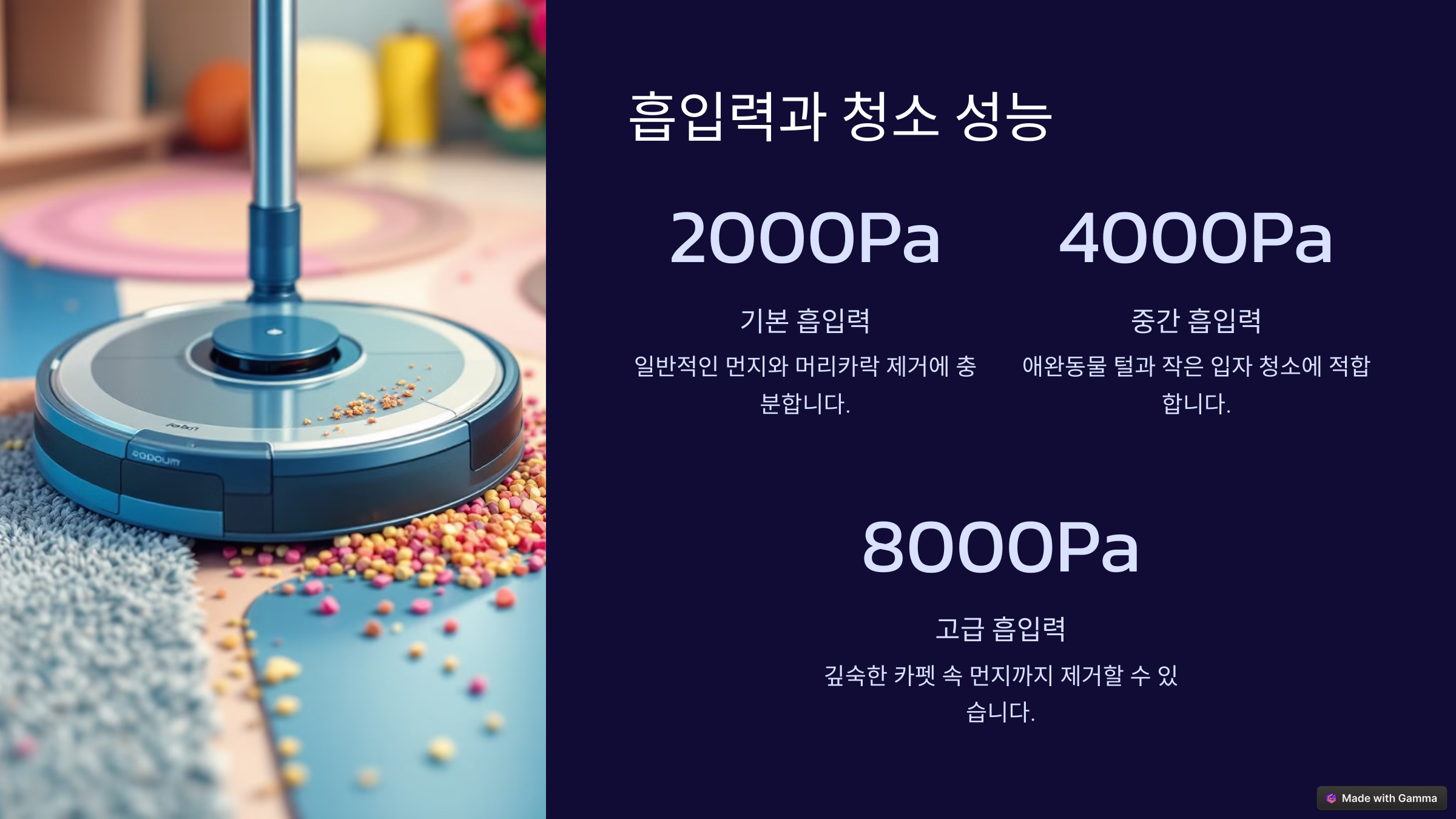 로봇청소기를 고를 때 가장 중요한 요소 중 하나가 바로 흡입력이에요. 흡입력이 부족하면 작은 먼지는 물론, 머리카락이나 애완동물 털도 제대로 제거하지 못할 수 있어요.