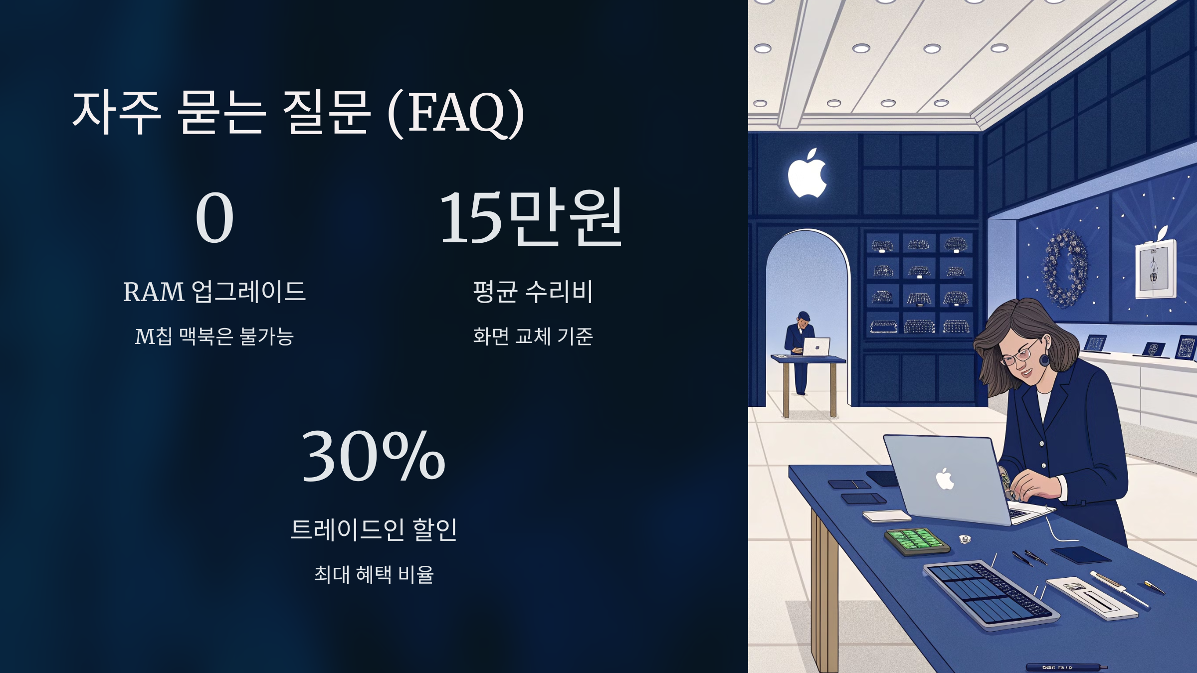 💡 애플케어+의 장점: 맥북 수리 비용이 상당히 비싸요. 특히 디스플레이나 로직보드 교체 비용은 수십만 원 이상이에요. 애플케어+에 가입하면 사고로 인한 손상(화면 깨짐, 액체 유입 등)도 저렴하게 수리받을 수 있어요.