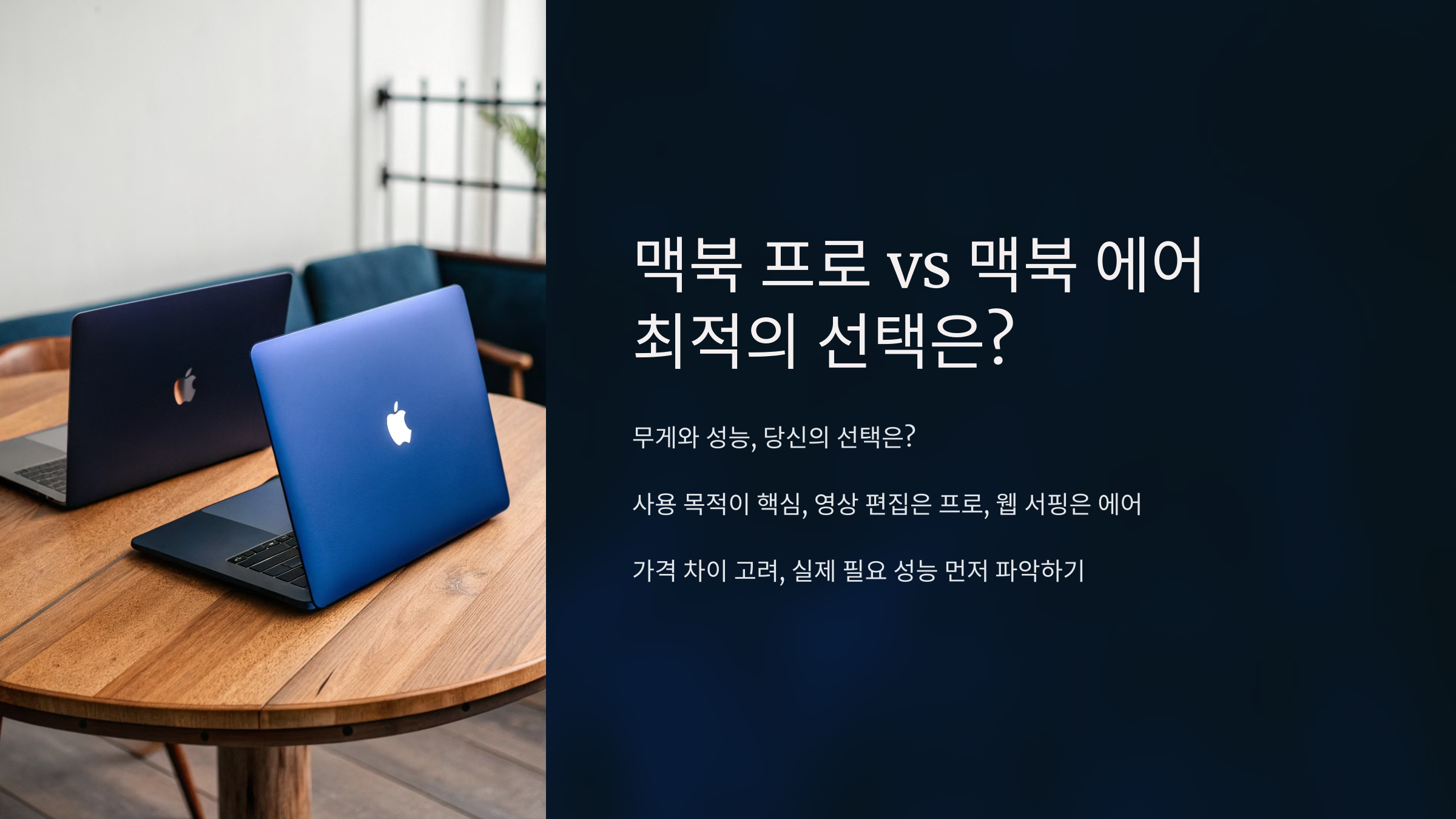 🔥 결론: 휴대성과 가벼운 작업이 중요하면 맥북 에어, 고성능 작업이 필요하면 맥북 프로를 선택하세요!