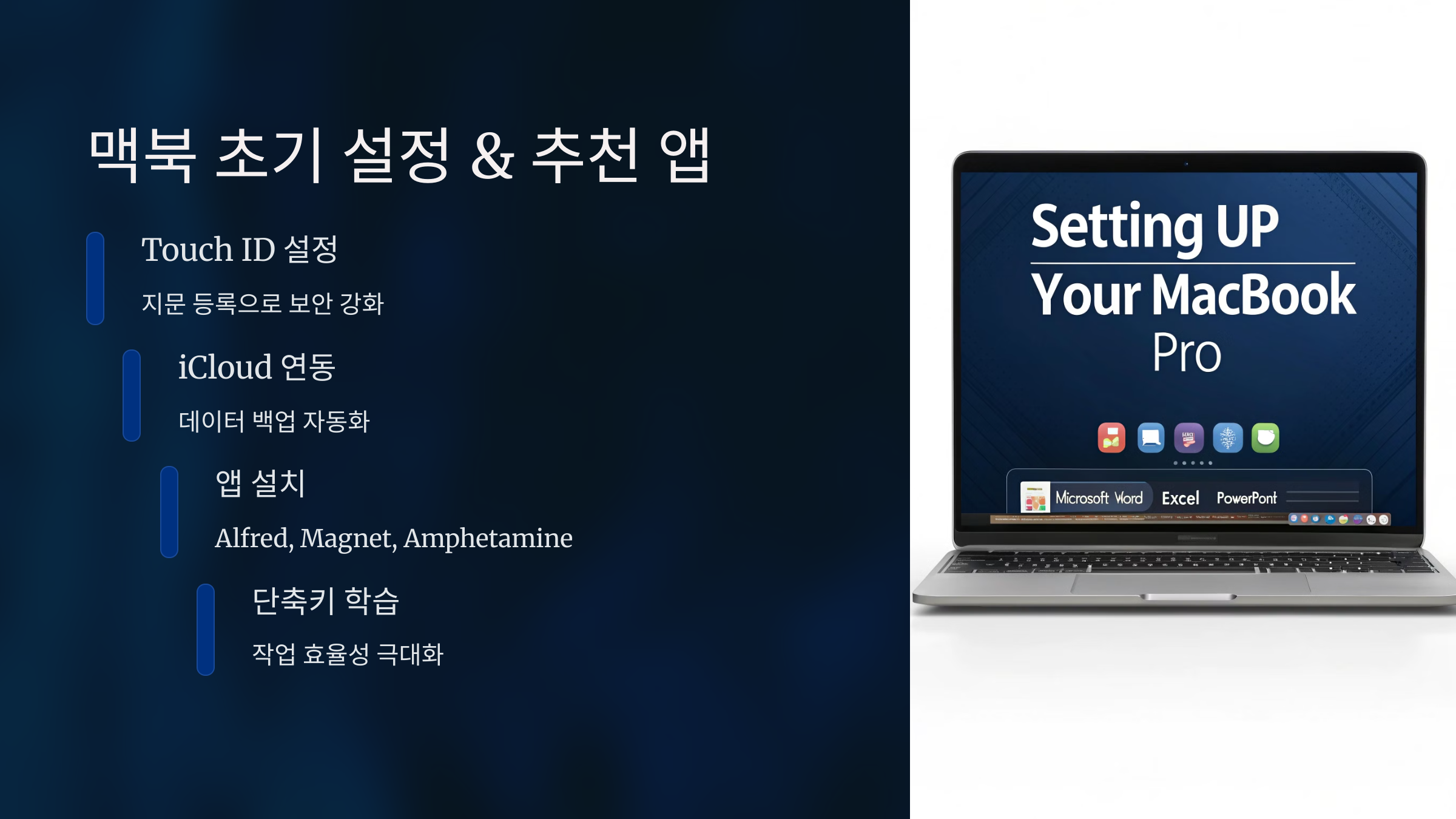 💡 필수 앱 설치: 업무나 공부에 도움이 되는 필수 앱을 설치하면 맥북을 더욱 효과적으로 활용할 수 있어요.