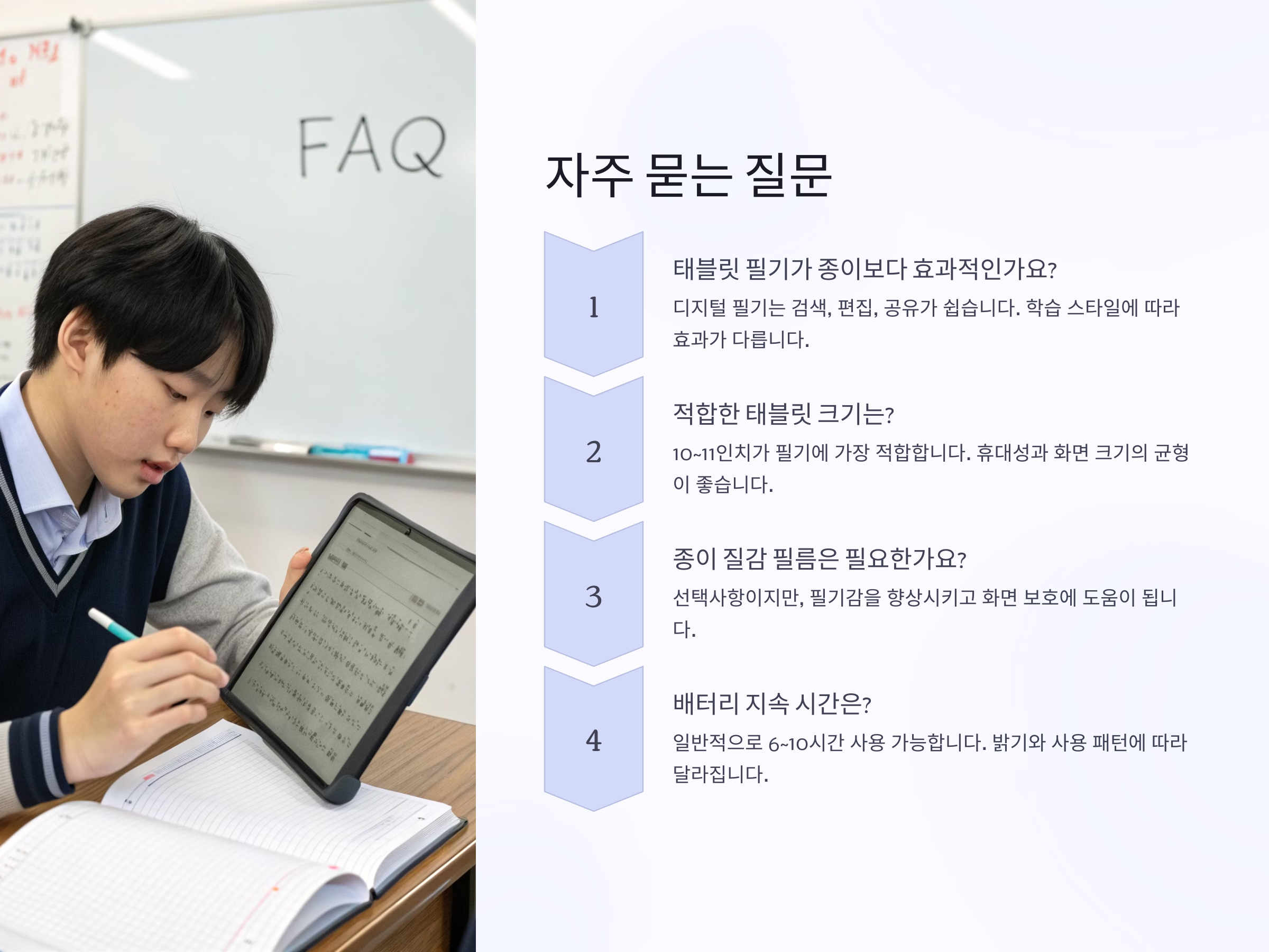 | 학생 | 강의 필기, 문제 풀이, 자료 정리 | 아이패드 Air, 갤럭시탭 S9 |