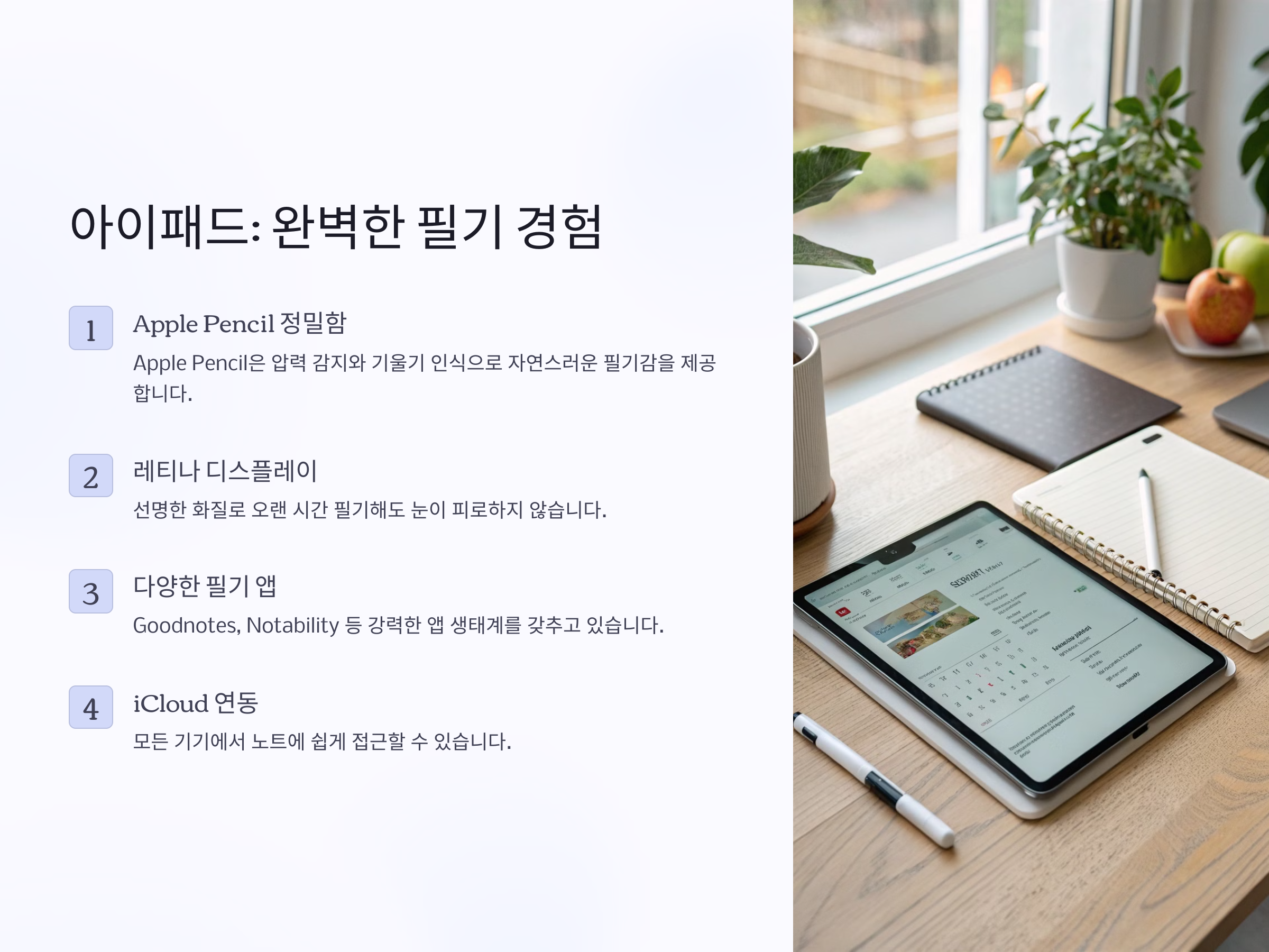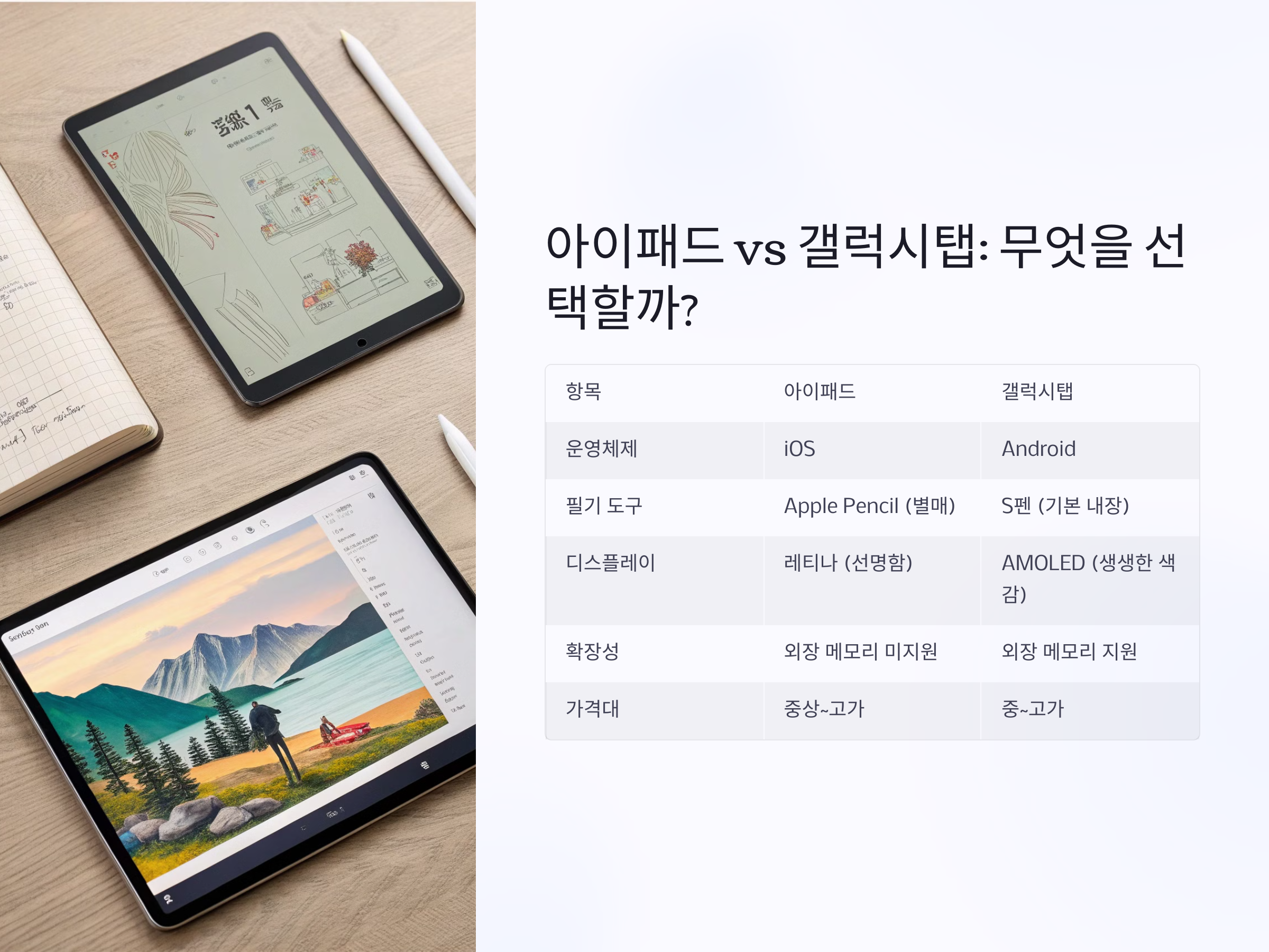필기용 태블릿은 단순한 노트 대체용이 아니라, 효율적인 학습과 업무를 돕는 필수 아이템이 되고 있어요. 이제 본격적으로 아이패드와 갤럭시탭의 필기 성능을 비교해 볼까요? 🎨