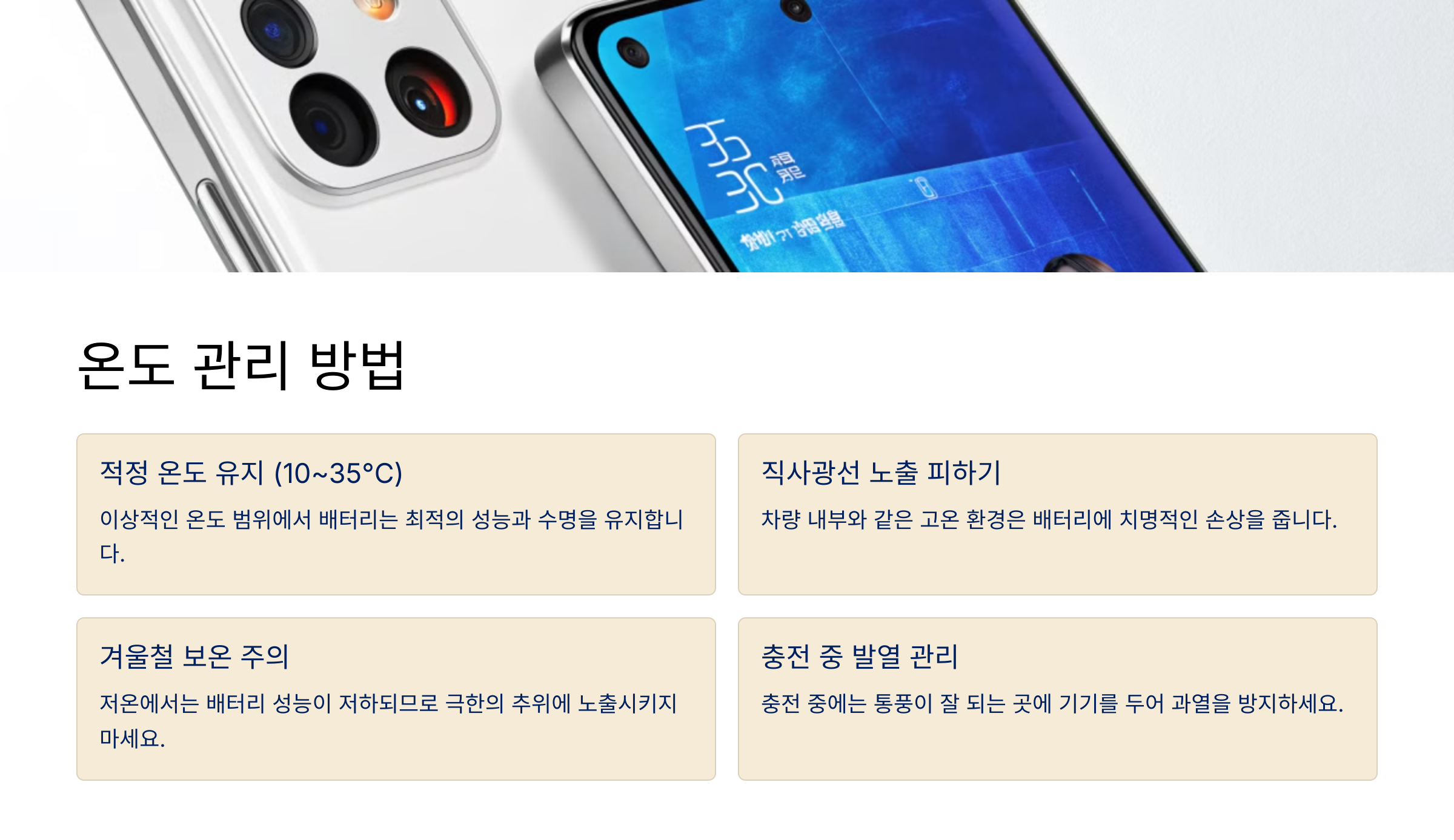 기온이 0도 이하로 내려가면 배터리 성능이 급격히 저하될 수 있어요. 겨울철 야외에서 사용할 때는 보호 케이스를 활용하세요.