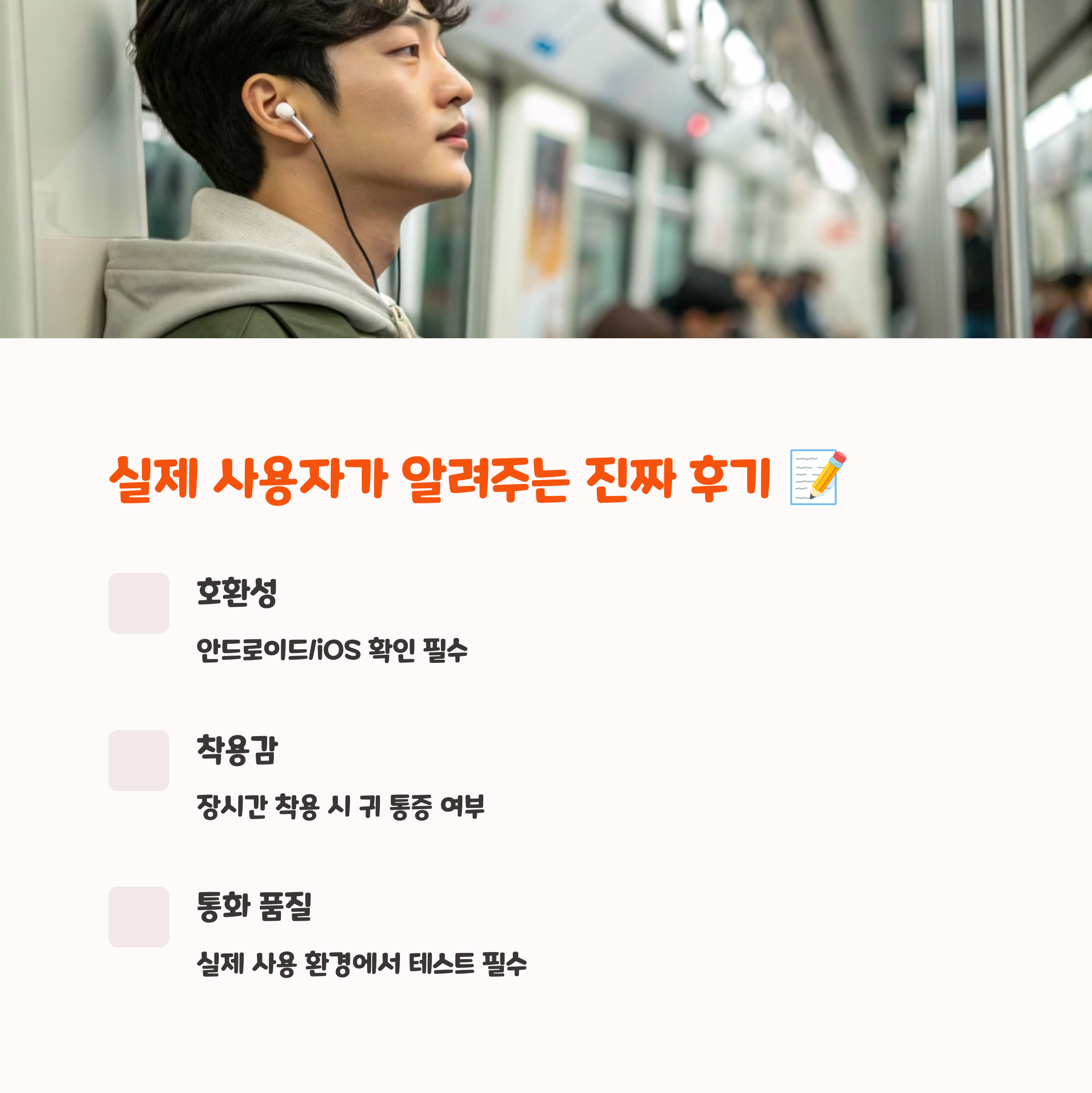 무선 이어폰의 스펙도 중요하지만, 실제 사용해본 후기가 훨씬 더 큰 도움이 되는 경우가 많아요. 특히 연결 안정성, 버튼 반응 속도, 앱 사용성 같은 건 직접 써본 사람만이 알 수 있는 부분이니까요. 그래서 오늘은 실사용 리뷰에서 자주 언급되는 핵심 포인트들을 모아봤어요!