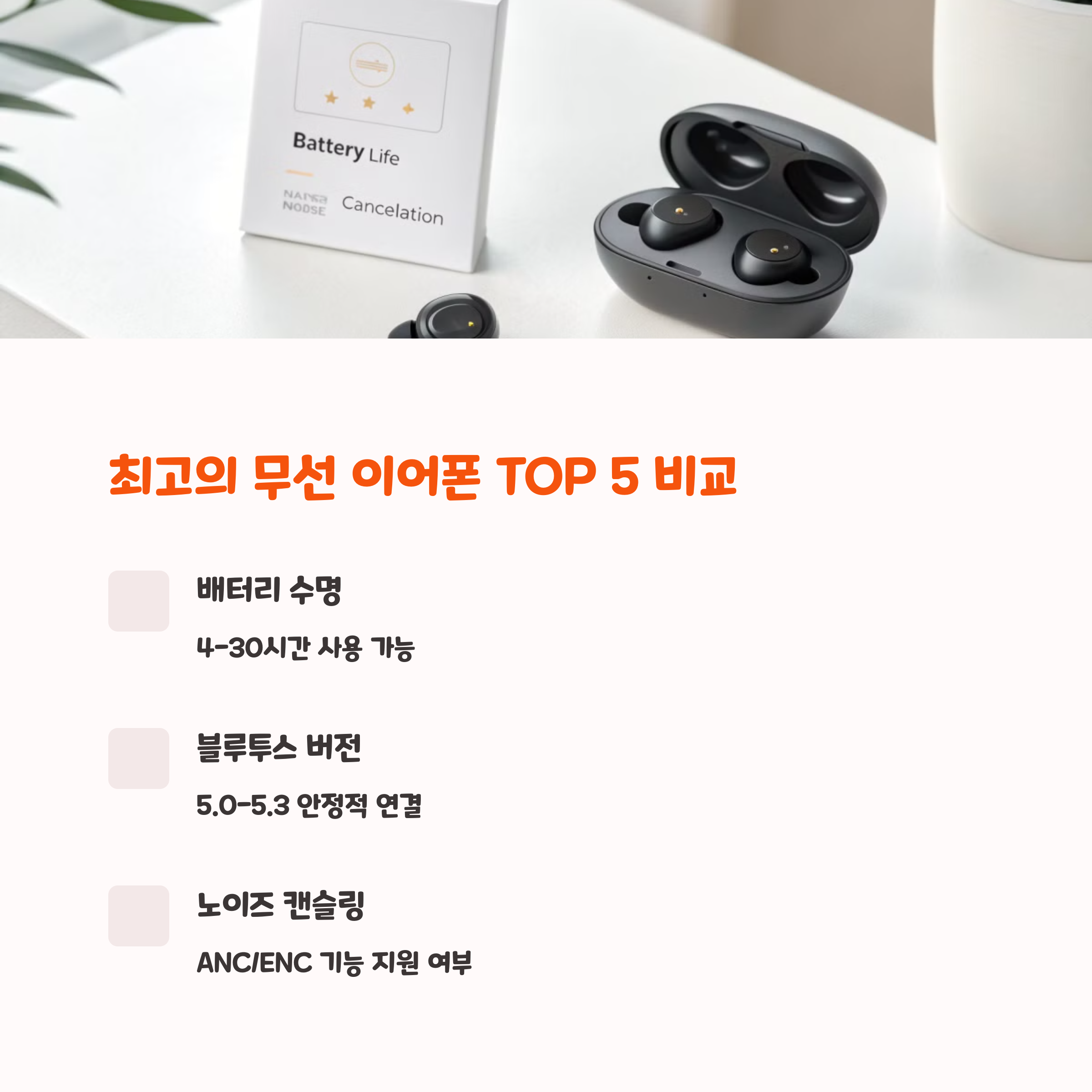 🎧 TOP 5 통화용 무선 이어폰 비교표