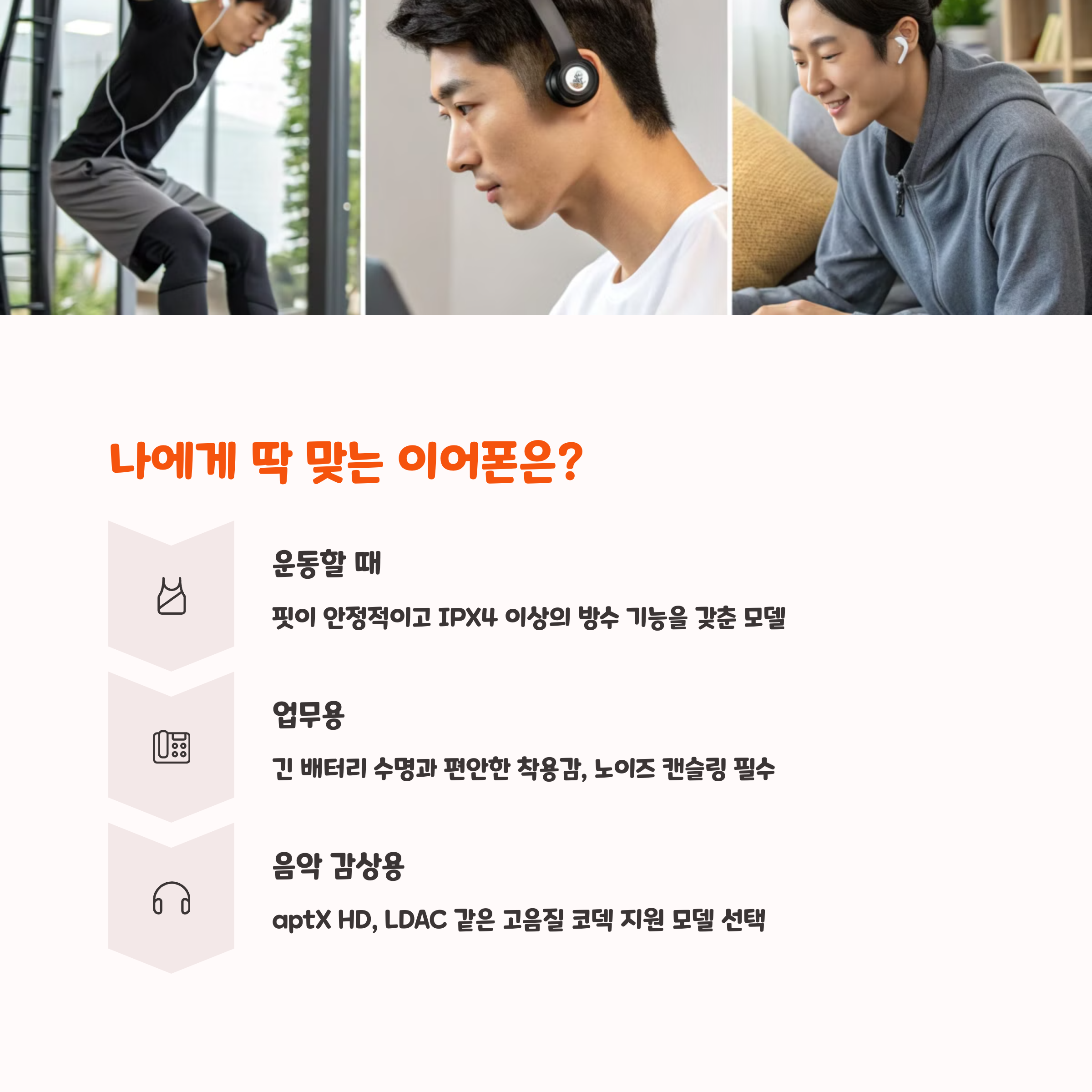 | 사용자 유형 | 추천 이어폰 | 이유 |
