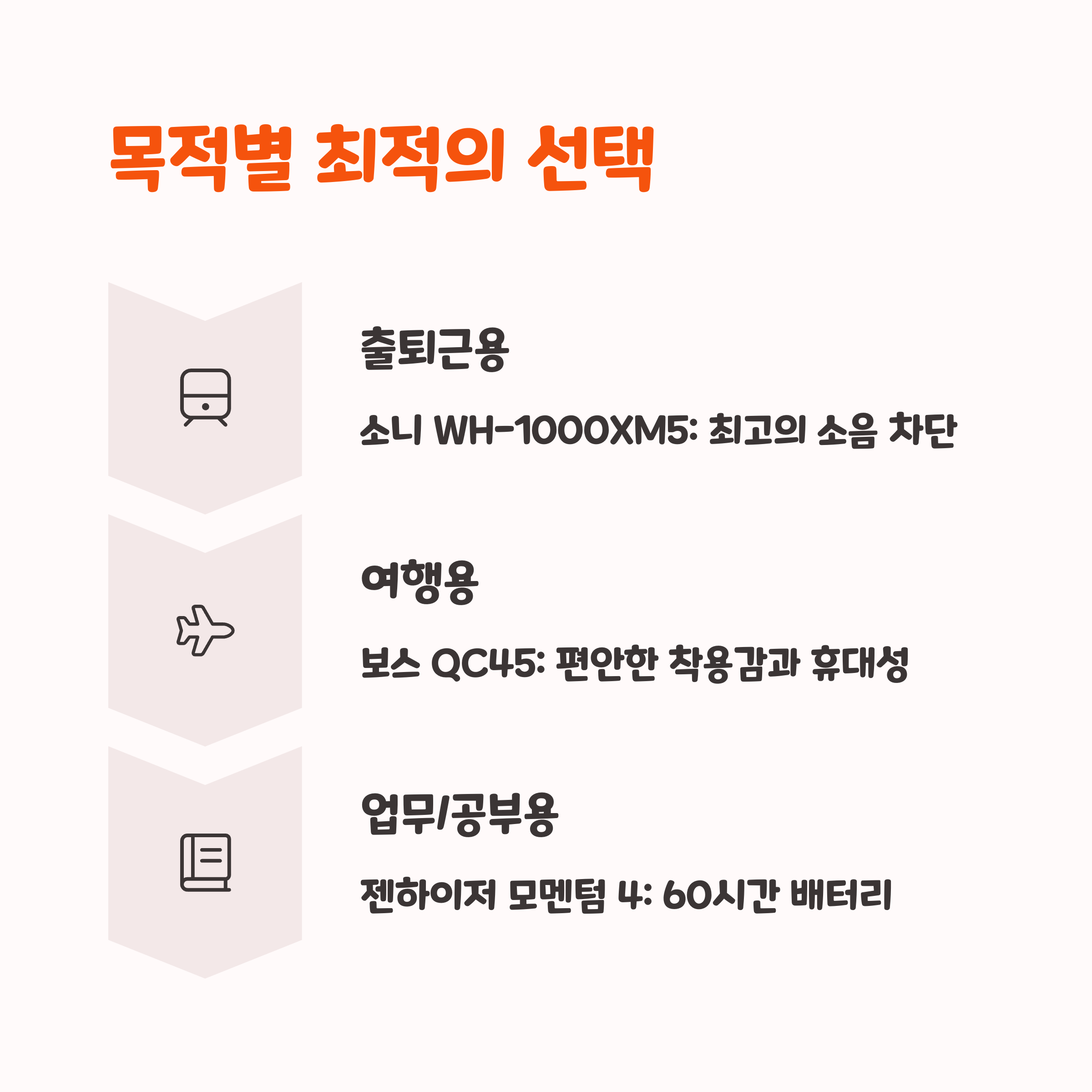 노캔 헤드폰은 단순히 음악 감상용이 아니에요. 출퇴근길 몰입, 영상 편집, 줌 회의, 게이밍까지 다양한 목적에 따라 제품을 다르게 선택할 필요가 있어요. 예를 들어 지하철에서 사용한다면 '착용감+배터리+소음차단력'이 중요하고, 영상 작업용이라면 '정확한 음향 균형'이 핵심이에요.