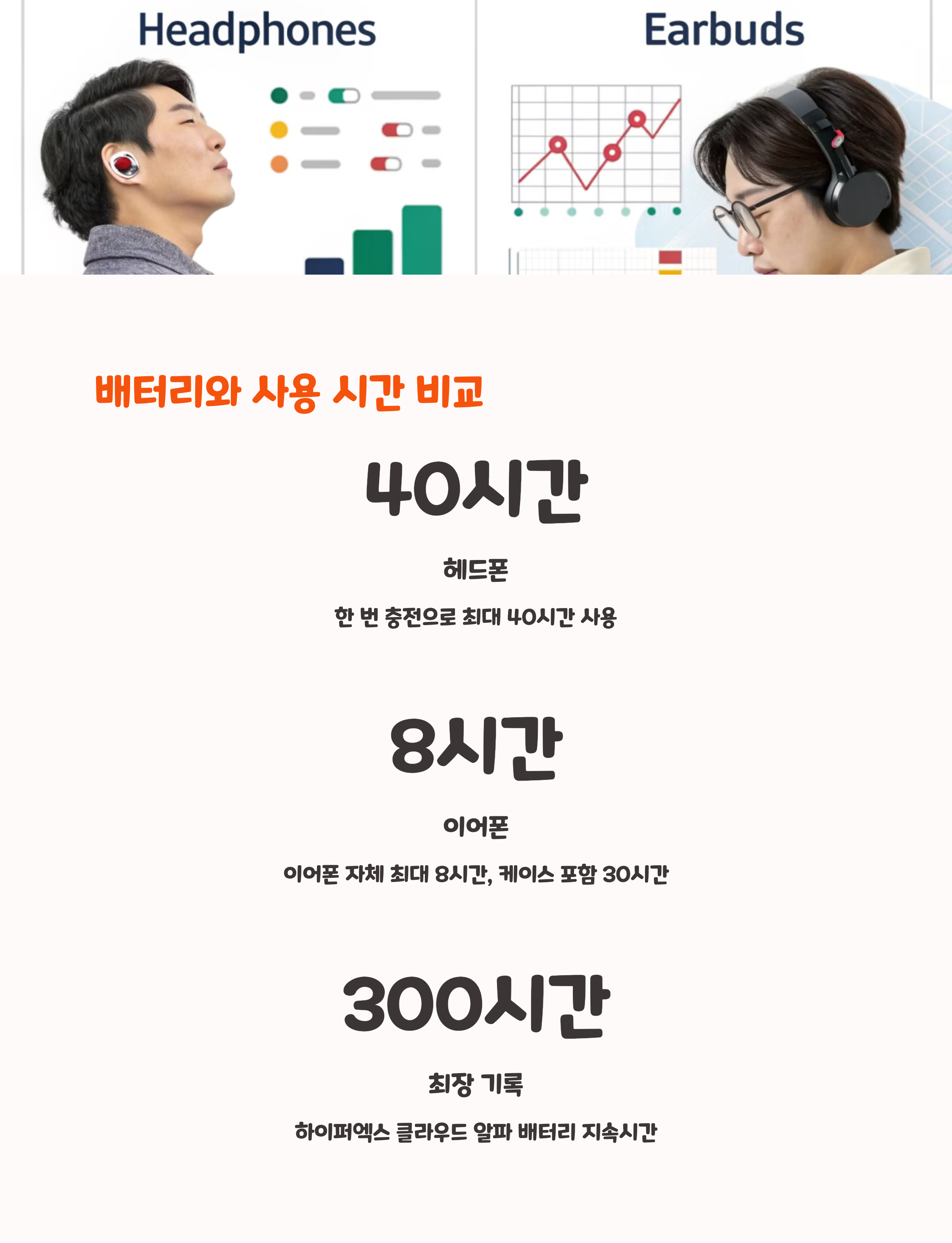 제가 생각했을 때는 무선 이어폰과 헤드폰은 완전 대체재라기보다, 사용자의 상황과 라이프스타일에 따라 '용도별로 따로 갖추는 게 베스트'예요. 이제 각 항목별로 찐 비교 시작해볼게요! 🎧