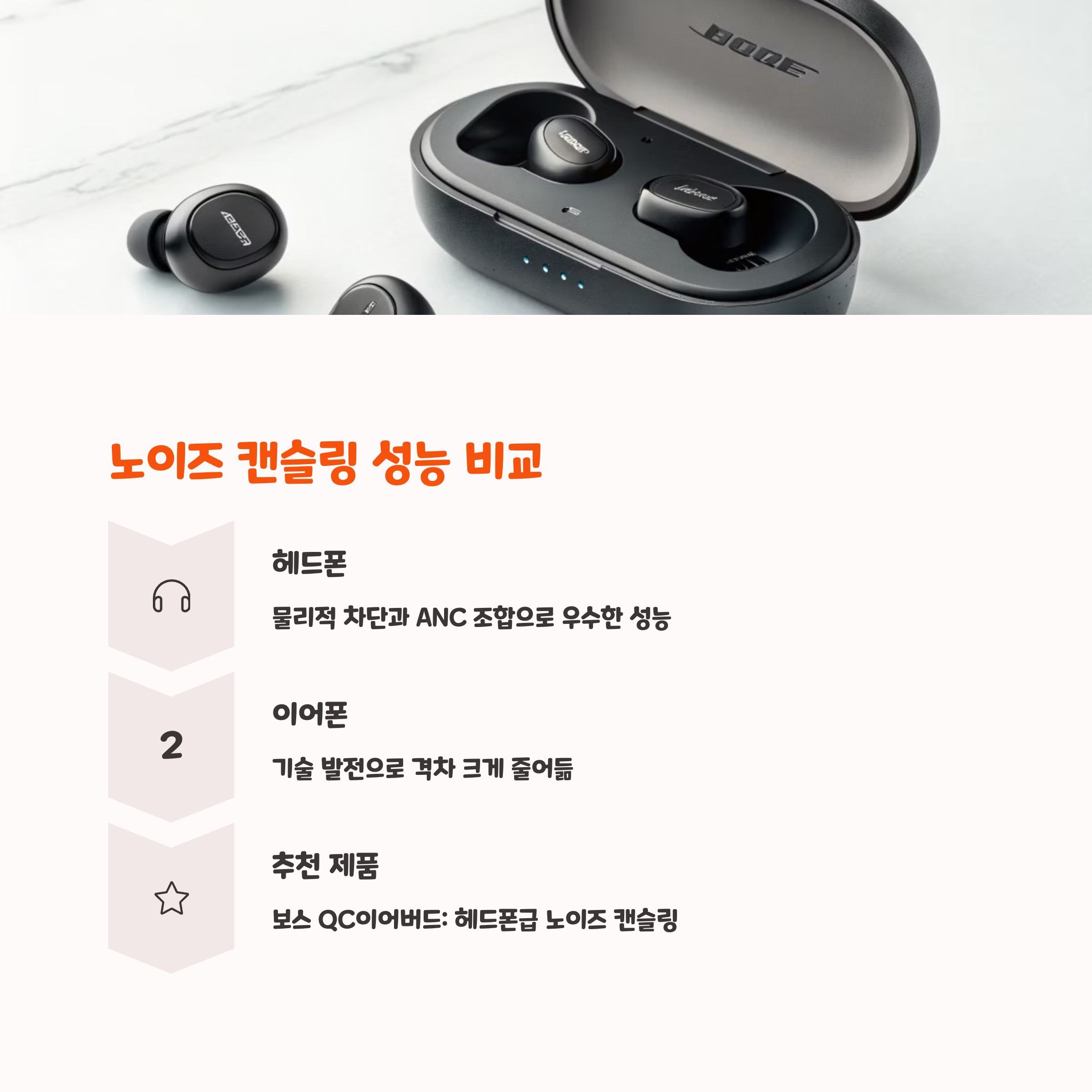 | 항목 | 무선 이어폰 | 노이즈 캔슬링 헤드폰 |