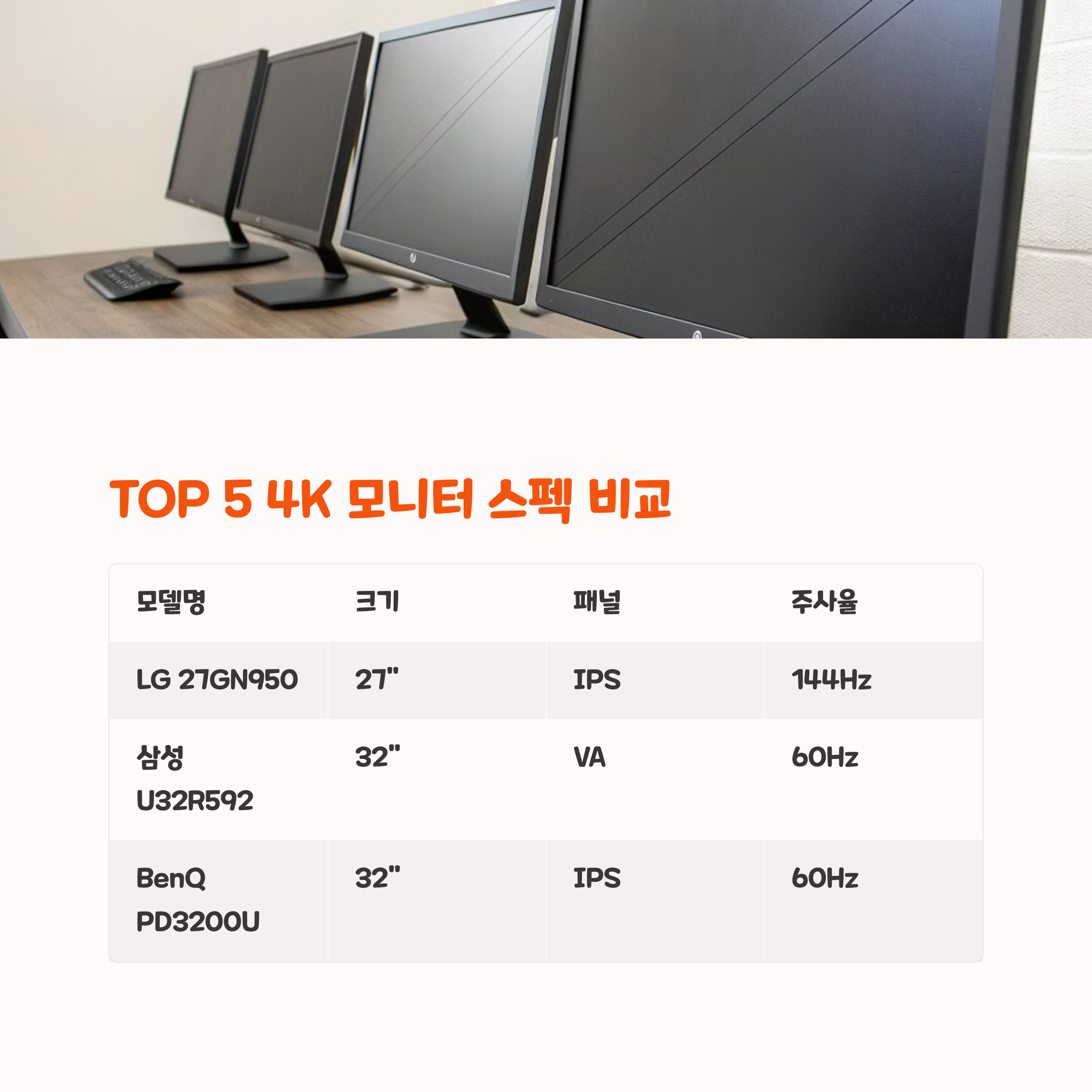 🖥️ 추천 4K 모니터 TOP 5 비교표