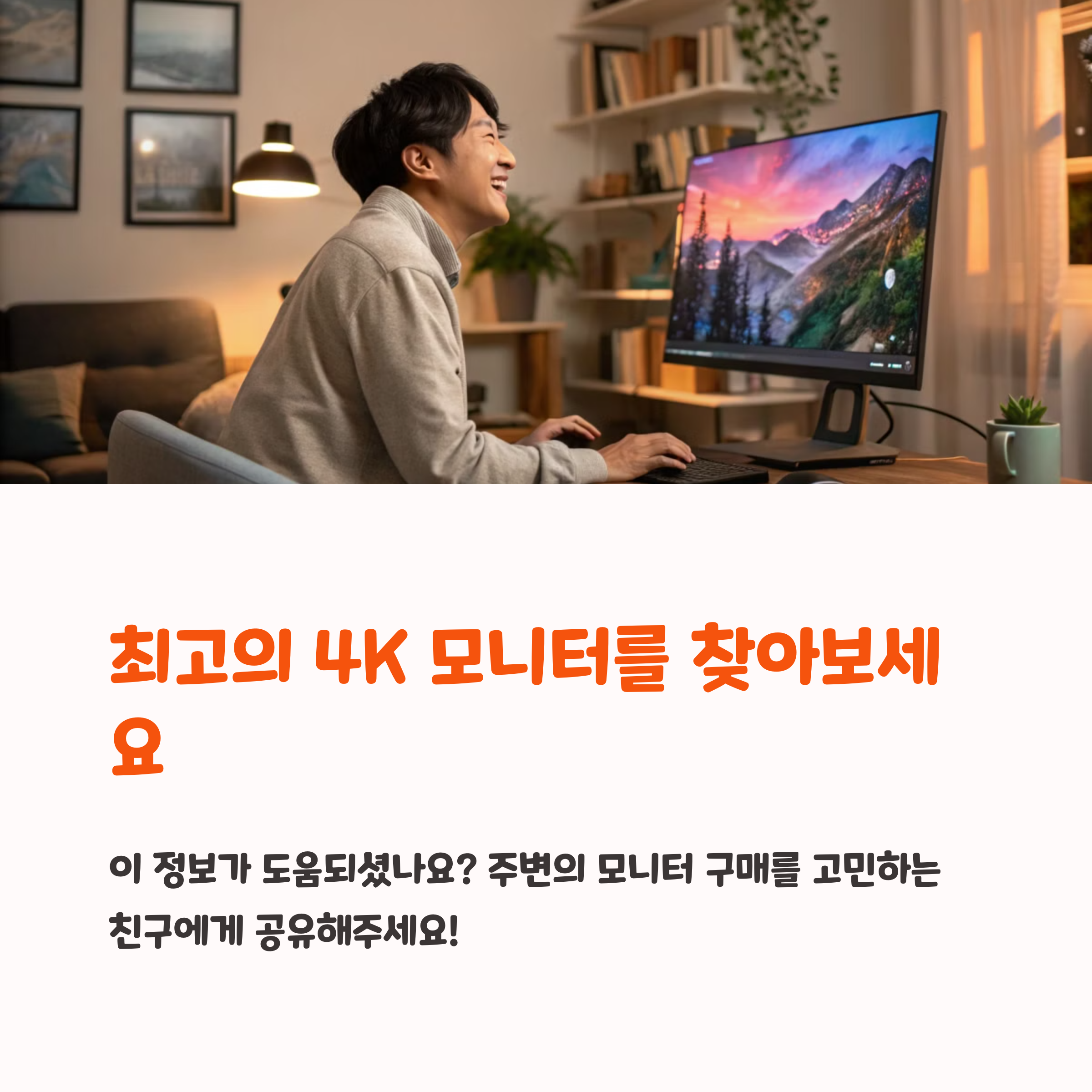 제가 생각했을 때 4K 모니터는 단순히 ‘화질이 좋은 제품’이 아니라, 작업 효율을 바꾸는 생산성 장비예요. 제대로 선택하면 눈 건강, 집중력, 성과까지 달라지니까요! 자, 그럼 바로 1번 섹션부터 시작해볼게요! 🎯
