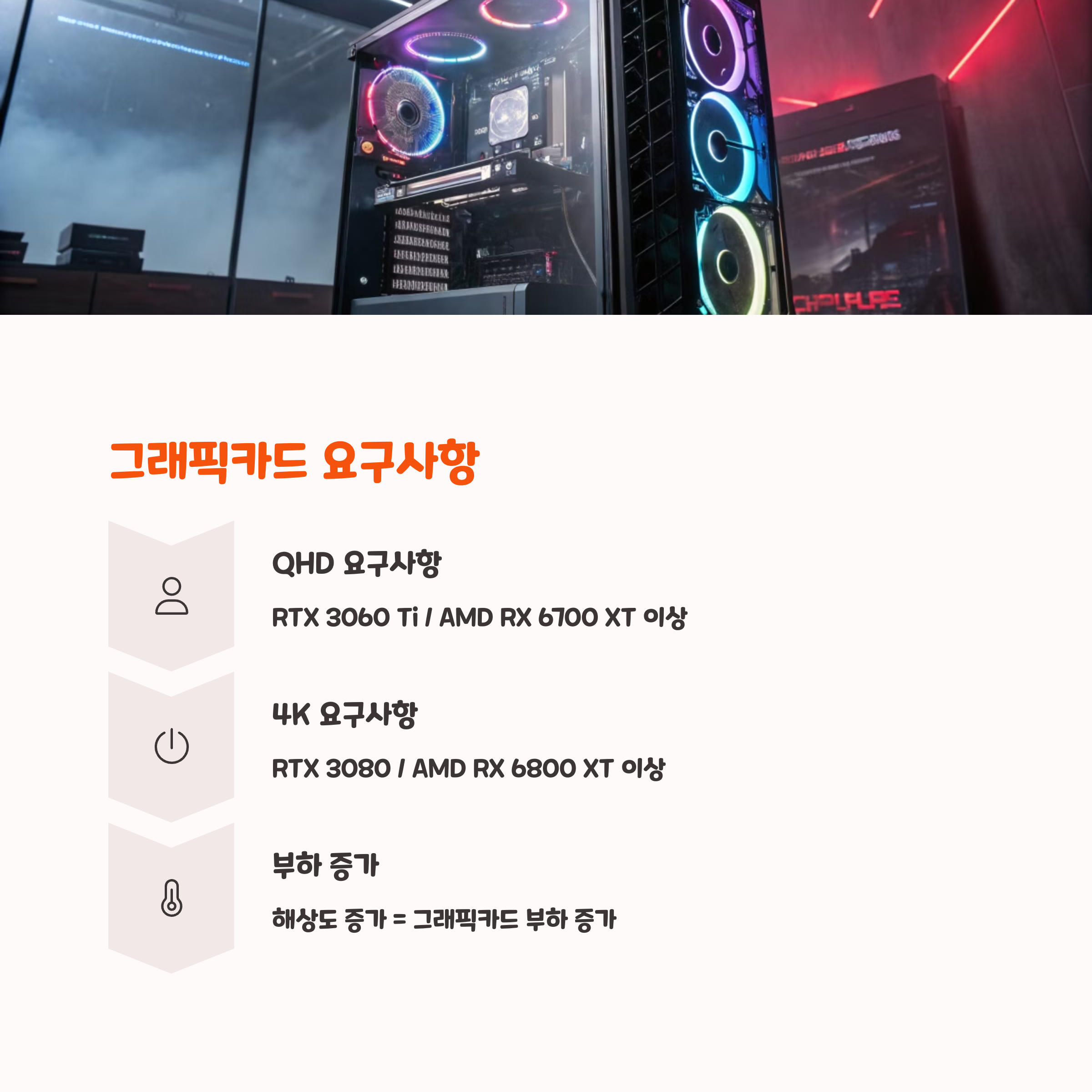 A6. RTX 3060~4060, RX 6700~7600 시리즈가 QHD에 적합해요.
