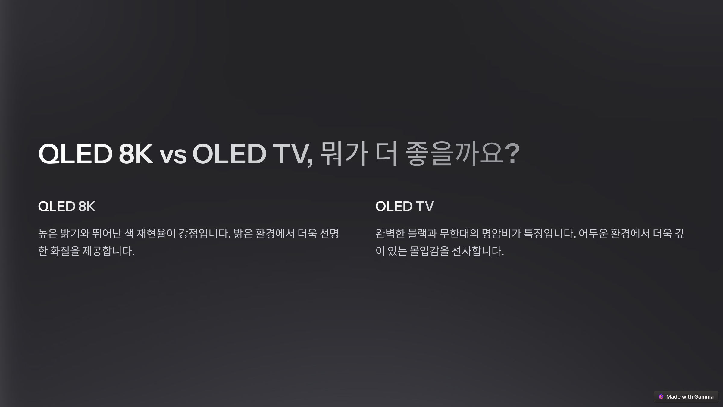 이제 QLED 8K TV와 OLED TV를 비교해볼까요? 어떤 기술이 더 우수할까요? 🤔