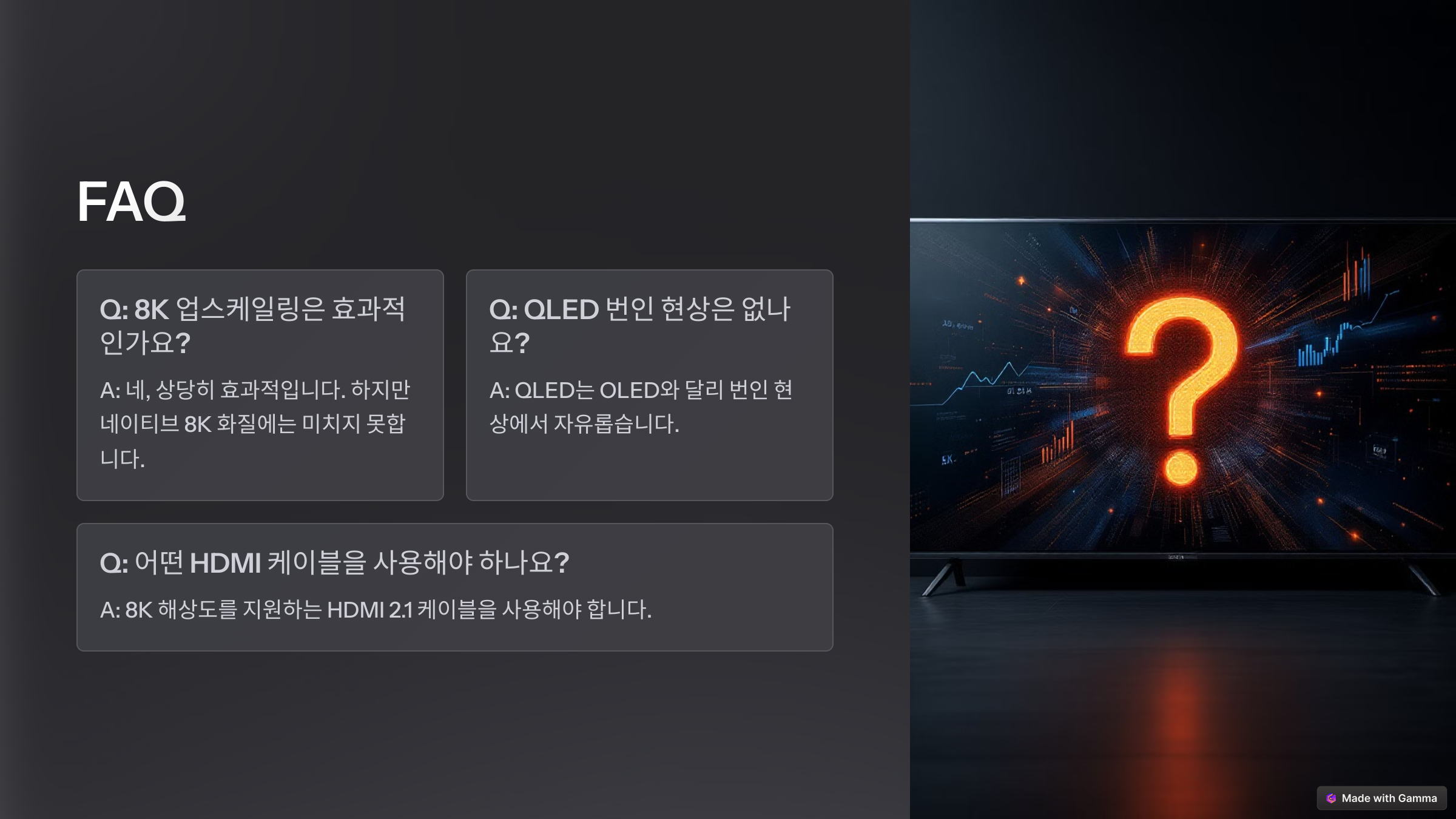 이제 QLED 8K TV에 대한 자주 묻는 질문(FAQ)을 확인해볼까요? ❓