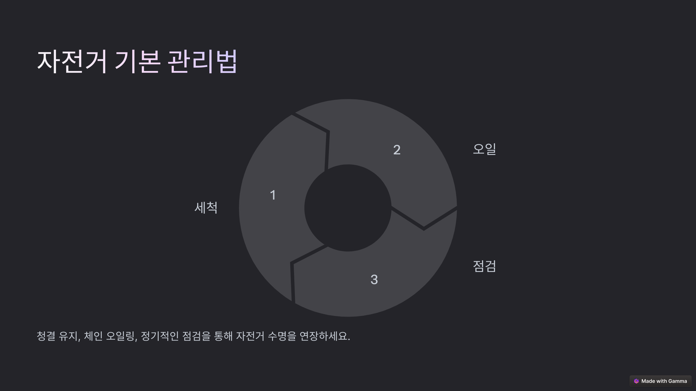이제 자전거를 오래 타기 위해 필요한 기본 유지보수 방법 을 알아볼까요? 🔧